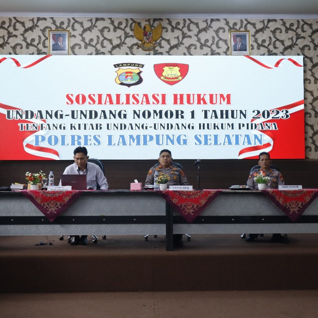 AKBP Yusriandi Yusrin dalam sambutannya menegaskan bahwa sosialisasi ini merupakan bentuk kesiapan Polres Lampung Selatan dalam mengimplementasikan KUHP baru secara profesional dan bertanggung jawab.