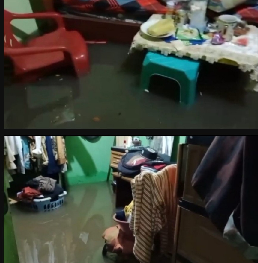 Tak ayal, air menjangkau seluruh perabotan rumah tangga yang bersentuhan dengan lantai dan membuat karpet terapung. Beruntung alat elektronik seperti televisi dan dispenser berada di tempat ketinggian.