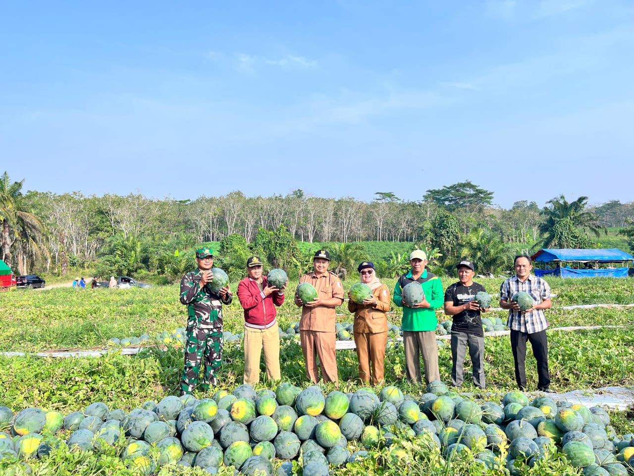 Wartapro.id _ Tulang Bawang – Badan Usaha Milik Desa (Bumdes) Abadi Jaya, Kampung Trijaya, Kecamatan Penawartama, Kabupaten Tulang Bawang, Provinsi Lampung melakukan kegiatan panen semangka yang merupakan program ketahanan pangan.