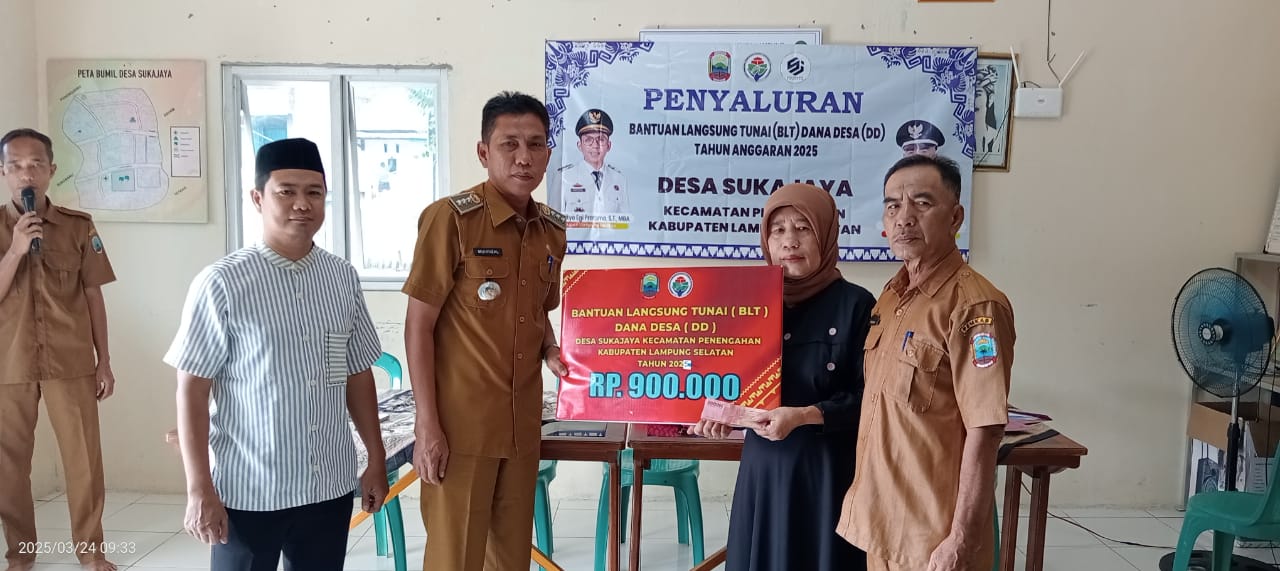 LAMSEL, WARTAPRO.ID – Pemerintah Desa (Pemdes) Sukajaya Kecamatan Penengahan Kabupaten Lampung Selatan (Lamsel) salurkan Bantuan Langsung Tunai Dana Desa (BLT/DD) Tahun 2025, Triwulan pertama pada 4 Keluarga Penerima Manfaat (KPM). Senin(24/3/2025).