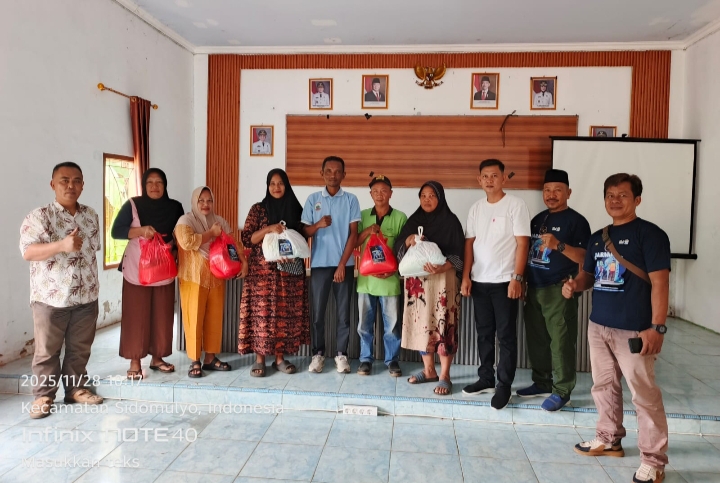 “Terimakasih JARMAS Peduli, yang sudah peduli, semoga JARAMAS Peduli semakin sukses untuk membantu masyarakat khususnya di Desa Sidomulyo Kecamatan Sidomulyo Ujar Gunawan Pj. Kades Sidomulyo dalam sambutannya. Jum’at (28/11/2025).