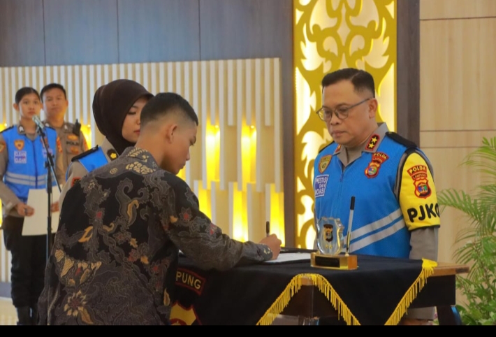 Komitmen tersebut ditandai Kapolda Helmy memimpin kegiatan penandatanganan pakta integritas penerimaan terpadu Anggota Polri tahun anggaran 2025 di Polda Lampung, Jumat (7/3/2025).