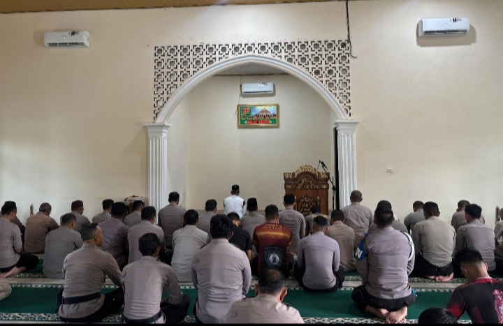 Sholat ghaib dipimpin oleh Ustadz H. Rafiudin dan diikuti ratusan jamaah, terdiri dari para perwira, bintara, ASN, serta perwakilan personel dari Polsek jajaran. Suasana khidmat terasa sejak awal prosesi hingga doa bersama yang dipanjatkan.