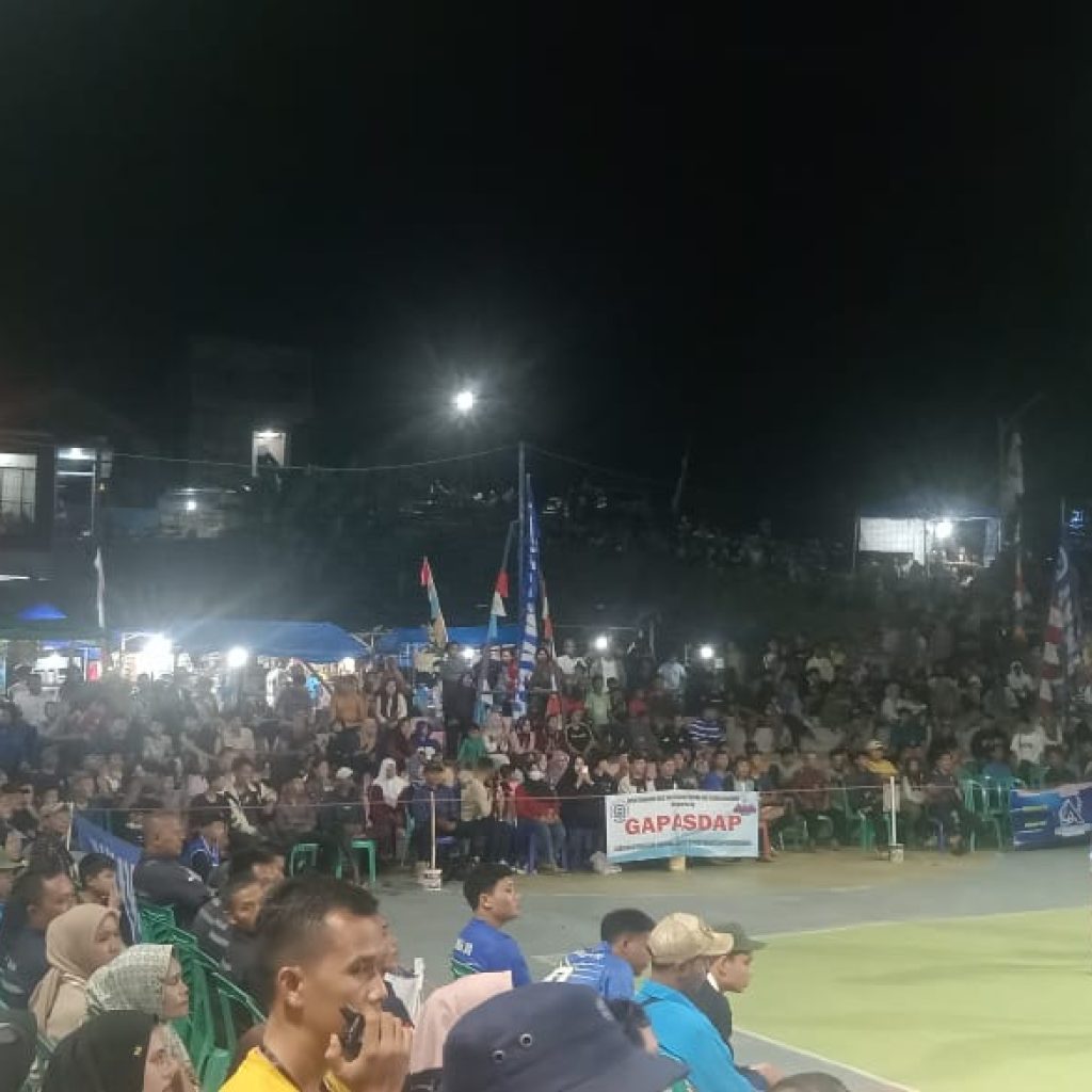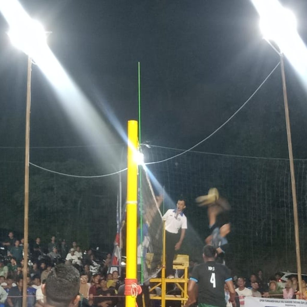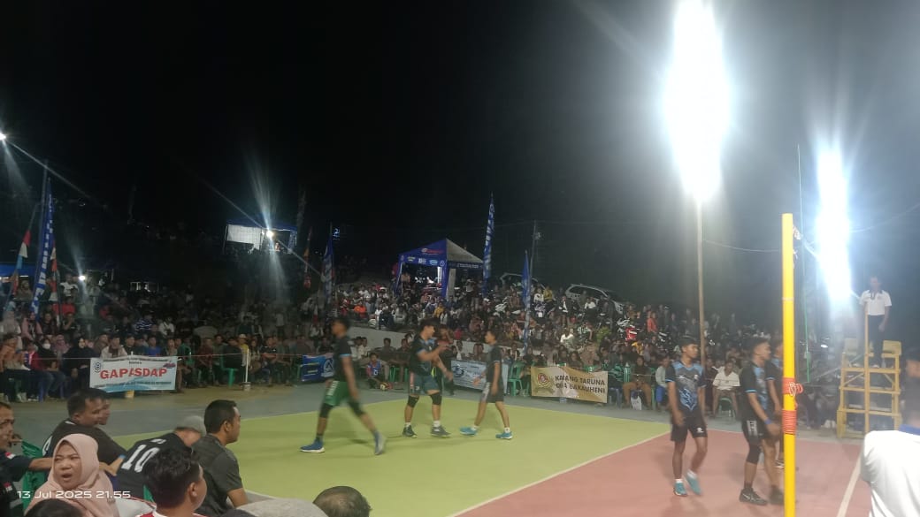 Pertarungan open turnamen Volly Ball Karang Taruna Cup yang digelar di Dusun Desa Bakauheni, Kecamatan Bakauheni, Kabupaten Lampung Selatan (Lamsel) malam kelima berlangsung sengit, pada Minggu malam (13/7/2025).