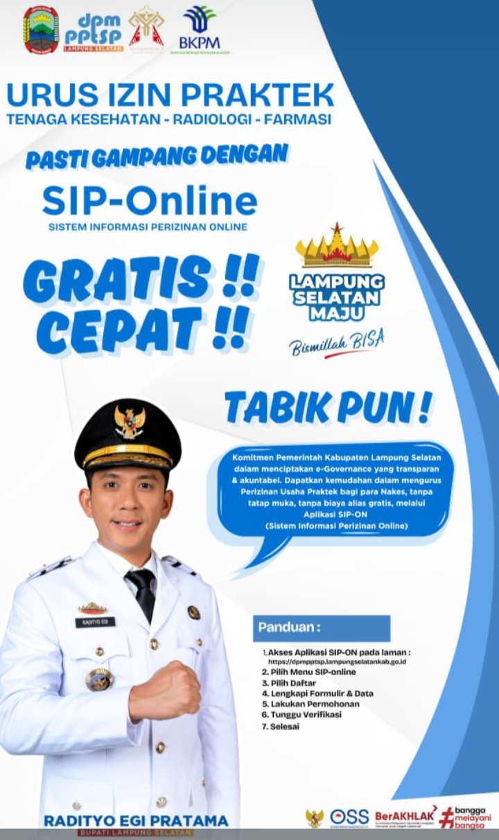 Kepala DPMPTSP, Rio Gismara mengatakan aplikasi SIP-Online hadir untuk turut mendukung program kerja 100 hari Bupati dan Wakil Bupati Lampung Selatan Radityo Egi Pratama – Syaiful dalam mempermudah pelayanan perizinan, terutama pelayanan perizinan praktek bagi tenaga kesehatan. Menurut Rio, secara teknis aplikasi ini sudah dapat dimanfaatkan, namun secara resmi bakal dilaunching bareng aplikasi SuperApp.