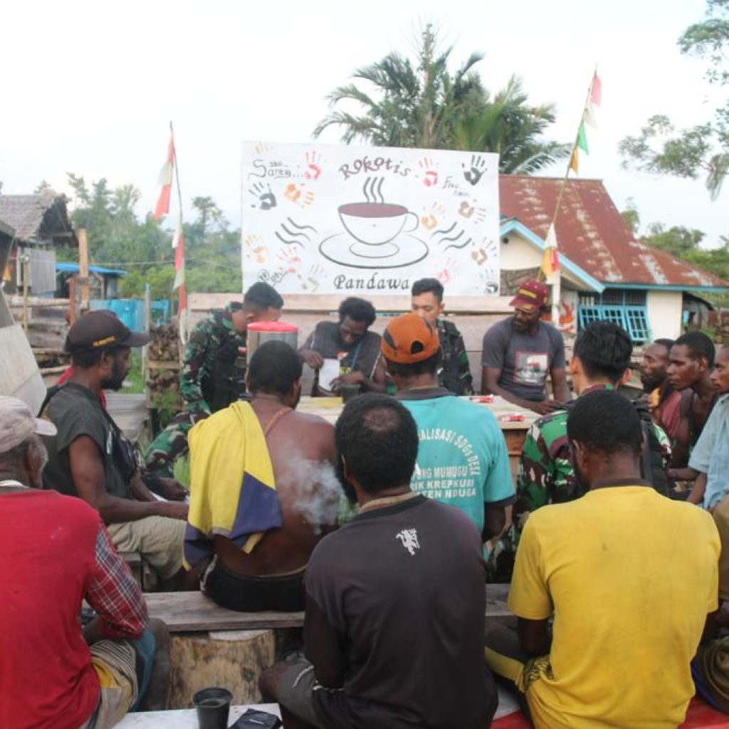 Seperti halnya yang dilakukan oleh personil Pos Kout Batas Batu telah membuktikan bahwa prajurit TNI dapat bergerak di tengah-tengah rakyat Papua dengan sangat dekat, tanpa adanya skat pemisah diantara mereka, hal tersebut terlihat pada saat acara ngopi bareng di Batas Batu, Kabupaten Nduga, Minggu (7/1/2024).