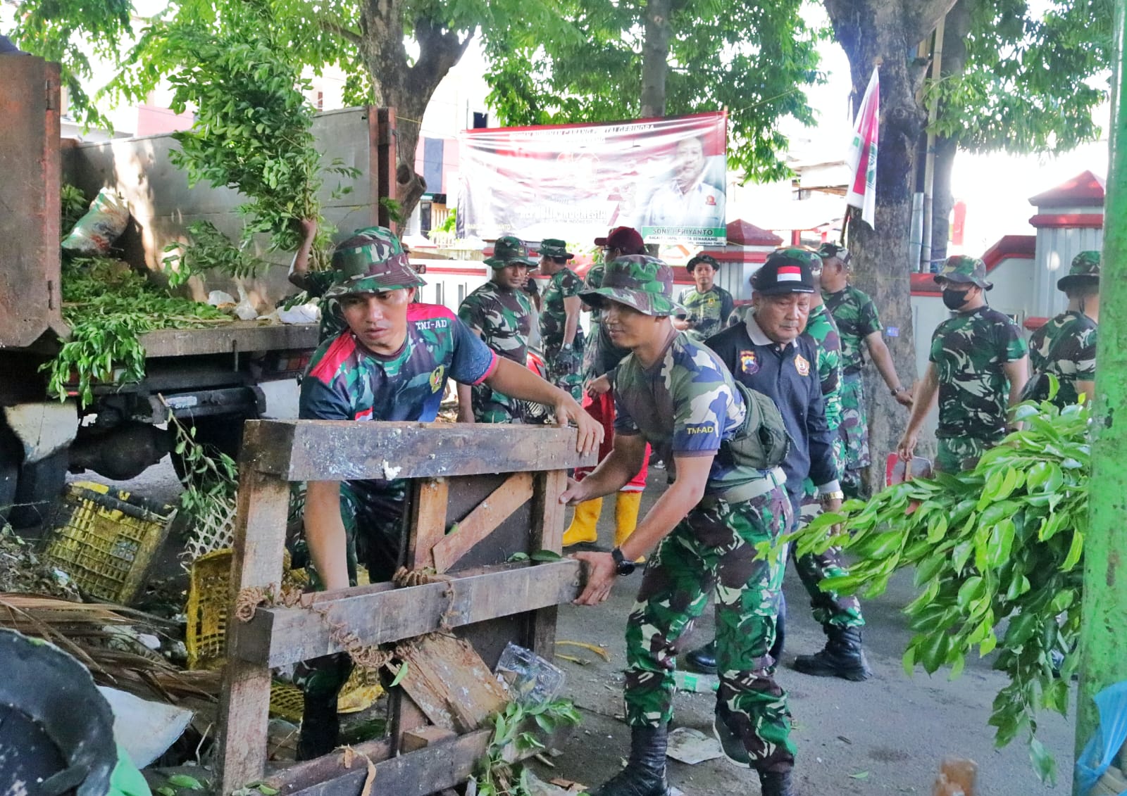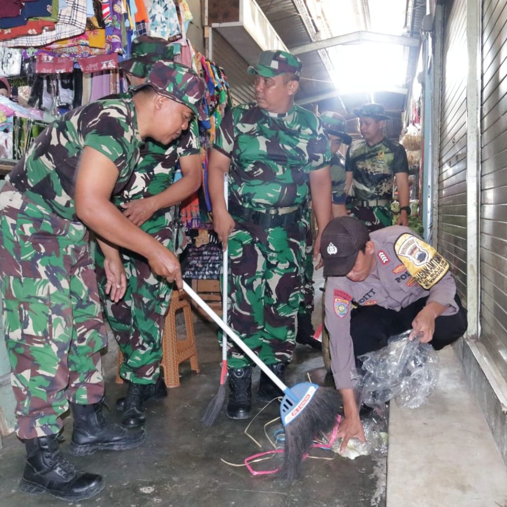 KOTA SEMARANG- Dalam rangka peduli lingkungan, Koramil 03/Utara-Timur Kodim 0733/Kota Semarang menggelar karya bakti sosial pembersihan Pasar Surtikanti, Kelurahan Bulu Lor Kecamatan Semarang Utara, Kota Semarang, Jawa Tengah, Selasa (09/01/2024).