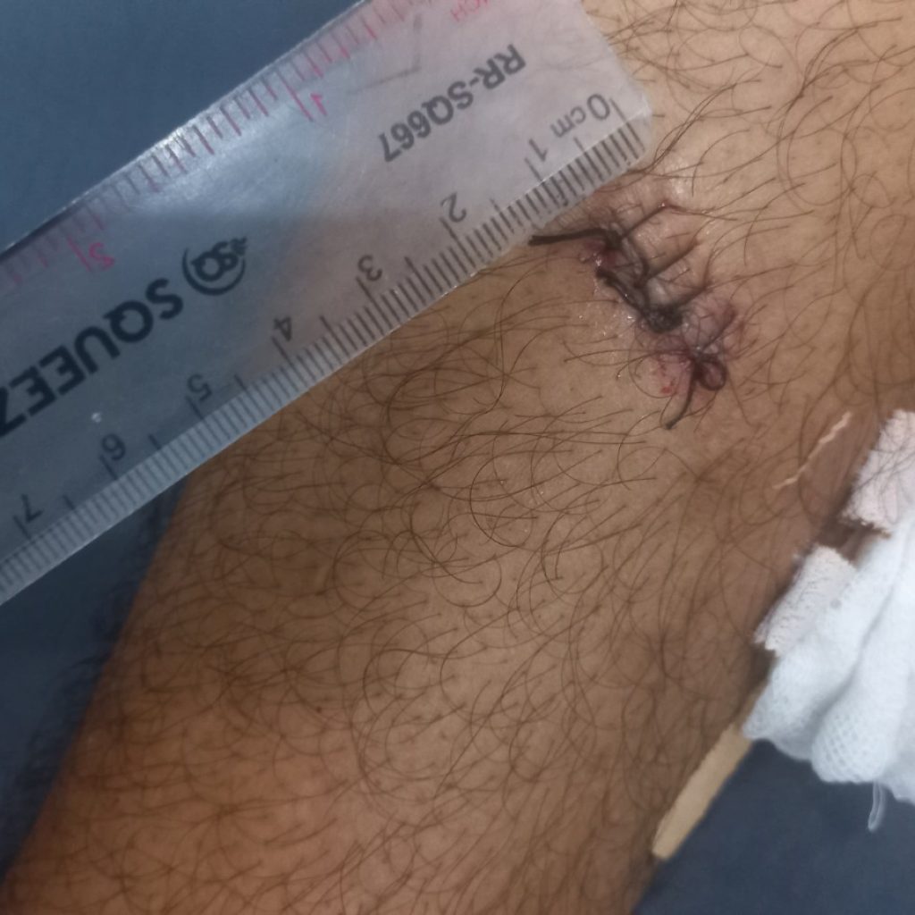 Setelah itu, pelaku mencabut pisau dan menyerang korban yang baru keluar rumah. Korban berusaha melawan, namun pelaku berhasil menikamkan pisau ke arah perut dan betis kiri korban.