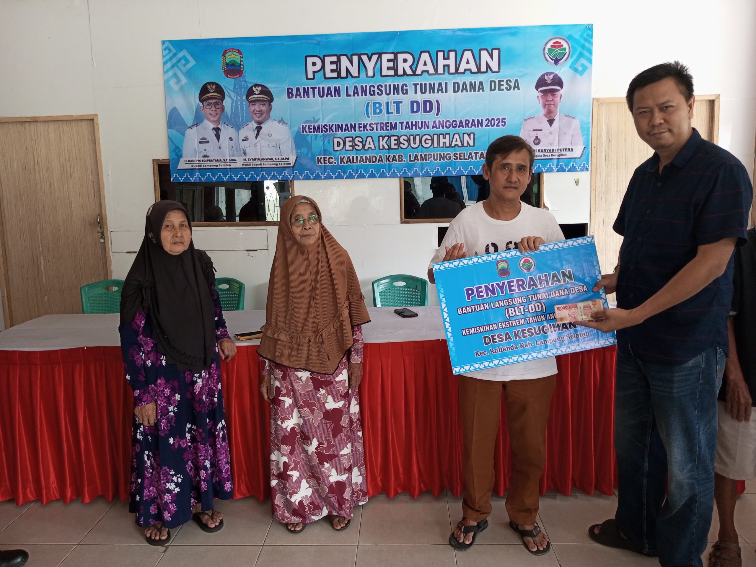 Acara tersebut berlangsung di Kantor Desa setempat, yang dihadiri langsung oleh Sekertaris Camat Kalianda Muhammad Nur, Kasi Ekobang, Kepala Desa, Bhabinsa, Pendamping Desa, Ketua BPD, Aparatur Desa Kesugihan, serta Keluarga Penerima Manfaa (KPM).