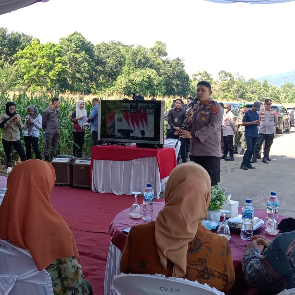 Kepolisian Resort (Polres) Lampung Selatan gelar panen raya jagung serentak kuartal II via zoom bersama Presiden Republik Indonesia Prabowo Subianto, yang dihelat di Dusun Sededer, Desa Banjarmasin, Kecamatan Penengahan, pada Kamis (5/6/2025).