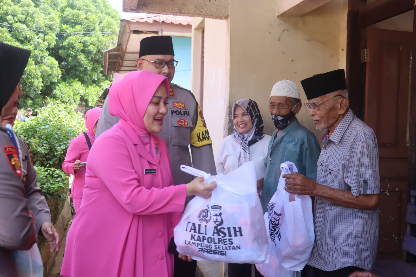 Kapolres secara langsung berinteraksi dengan para lansia, memberikan bingkisan, dan mengucapkan doa.