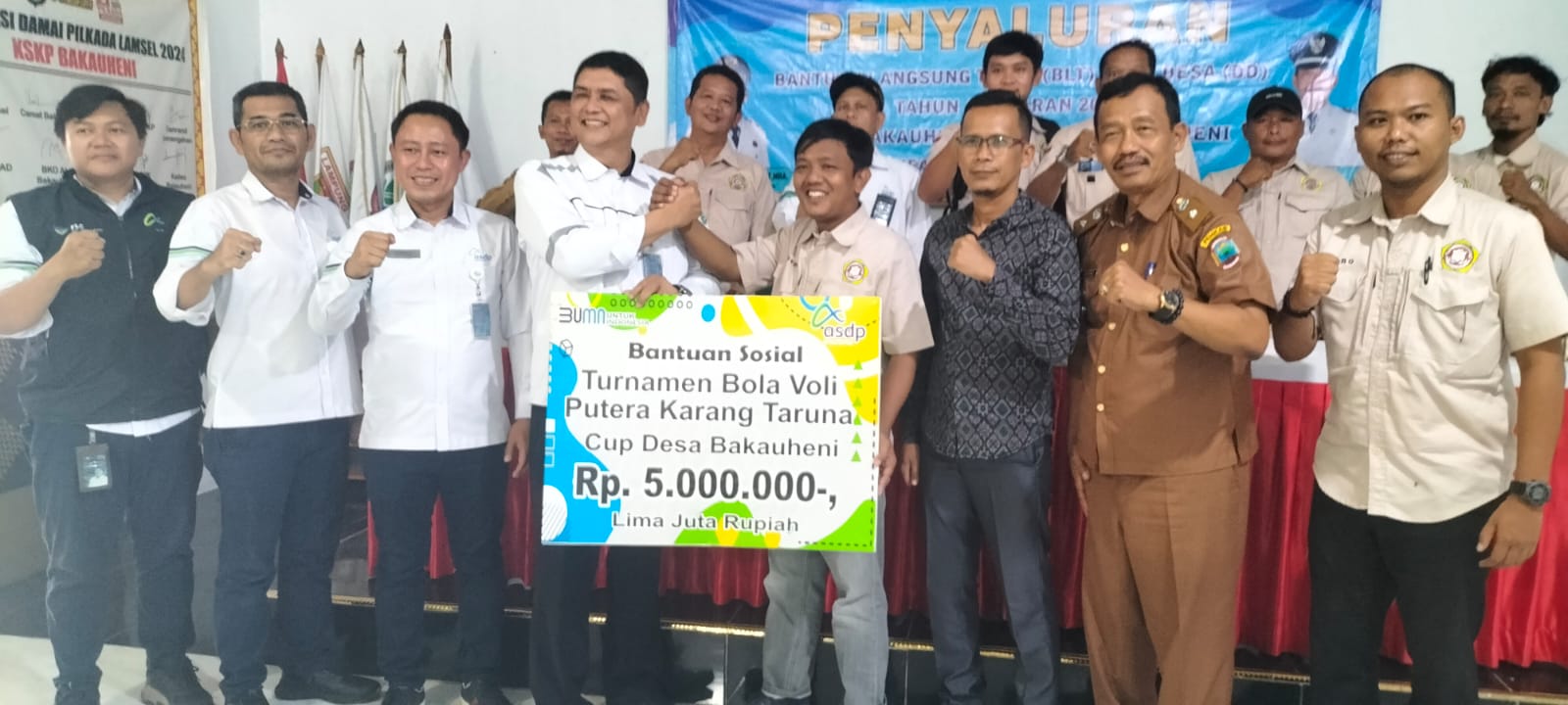 “Kami memberikan support dan bantuan uang tunai senilai Rp.5.000.000. ( Lima Juta Rupiah) Semoga bermanfaat untuk kemajuan dunia olahraga serta dapat menciptakan bibit unggul yang berprestasi dibidang olahraga Voly Ball yang ada di Desa Bakauheni,” ujar GM Syamsudin.