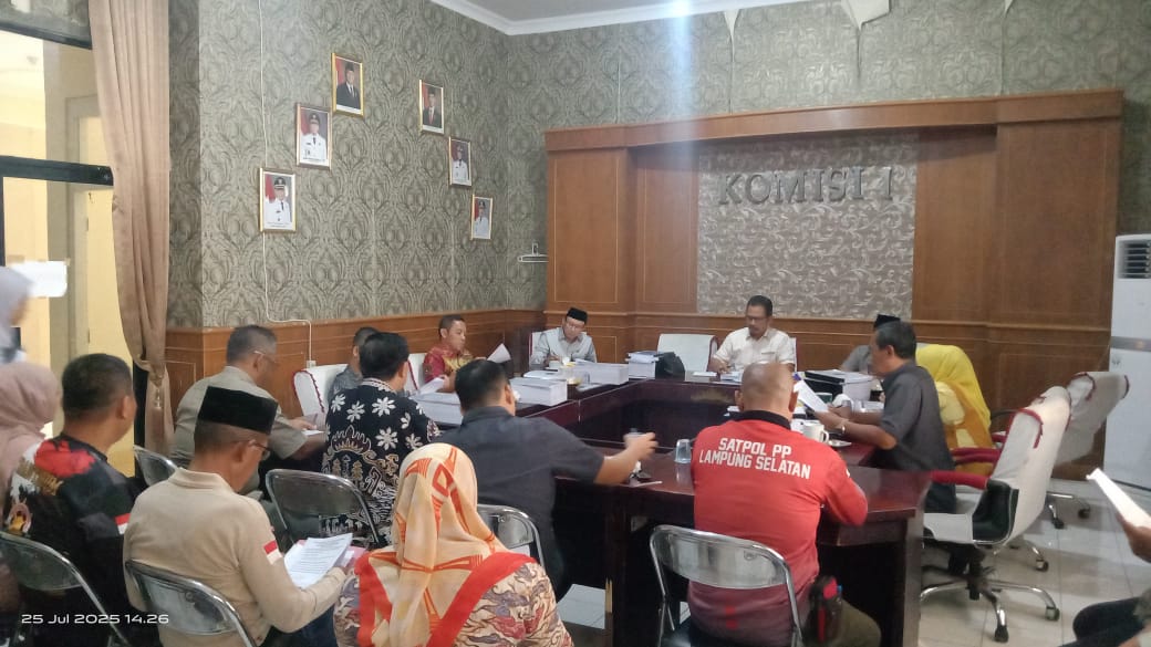 Komisi I Dewan Perwalian Rakyat Daerah (DPRD) Kabupaten Lampung Selatan (Lamsel) bersama Organisasi Perangkat Daerah (OPD) menggelar Rapat Kerja (Raker), di ruangan Komisi setempat, pada Jum’at (25/7/2025).