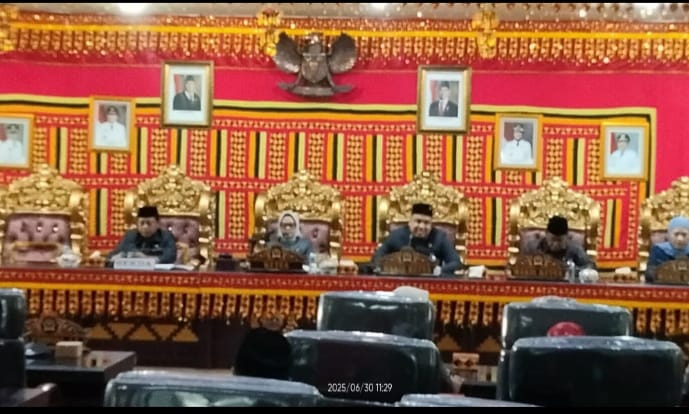 DPRD Kabupaten Lampung Selatan, menggelar Rapat Paripurna dalam rangka penyampaian laporan hasil pembahasan Badan Anggaran (Banggar) terhadap Rancangan Peraturan Daerah (Ranperda) tentang Pertanggungjawaban Pelaksanaan APBD Tahun Anggaran (TA) 2024, Senin (30/6/2025).