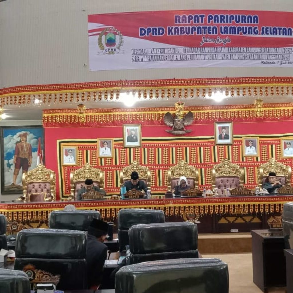 Rapat paripurna dalam rangka penyampaian Rancangan Peraturan Daerah (Ranperda) perubahan Anggaran Pendapatan Belanja Daerah (APBD) Kabupaten Lampung Selatan (Lamsel) Tahun Anggaran (TA) 2025 berlangsung dengan khidmat.