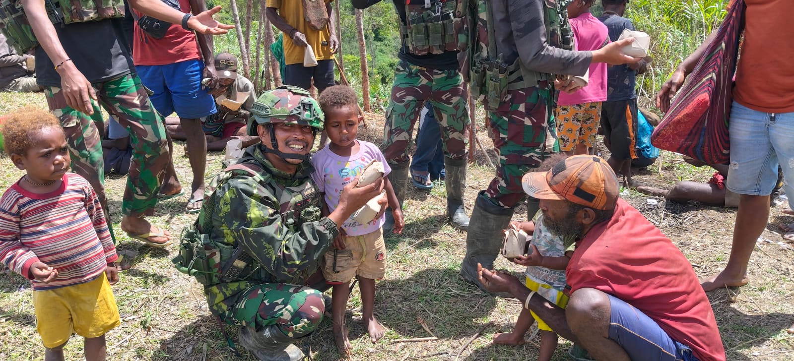 Sambut Natal, Satgas Yonif 113/JS Pos Maya Bagikan 65 Paket Makanan Siap Saji untuk Warga Intan Jaya