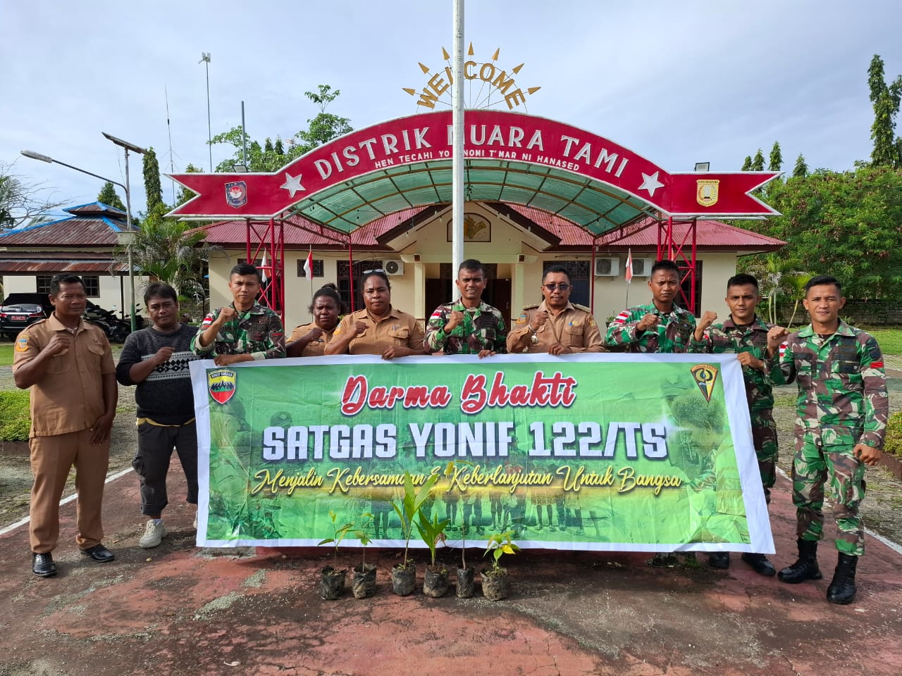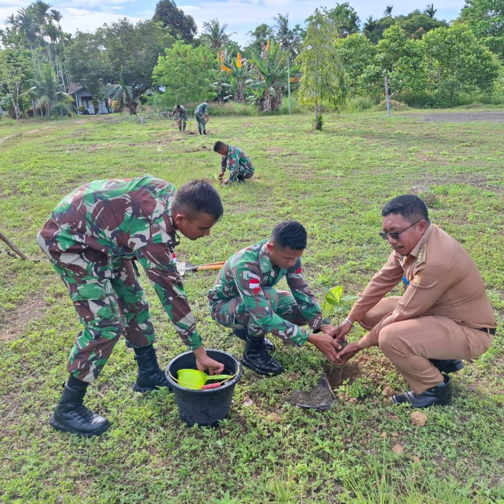 Salah satu bentuk kepedulian pada lingkungan di desa binaan Satgas Pamtas Yonif 122/TS melaksanakan penanaman pohon sejumlah 140 Pohon, terdiri dari Durian, Nangka, coklat, Matoa, Pinang, bersama masyarakat dan unsur pegawai Distrik Muara Tami.