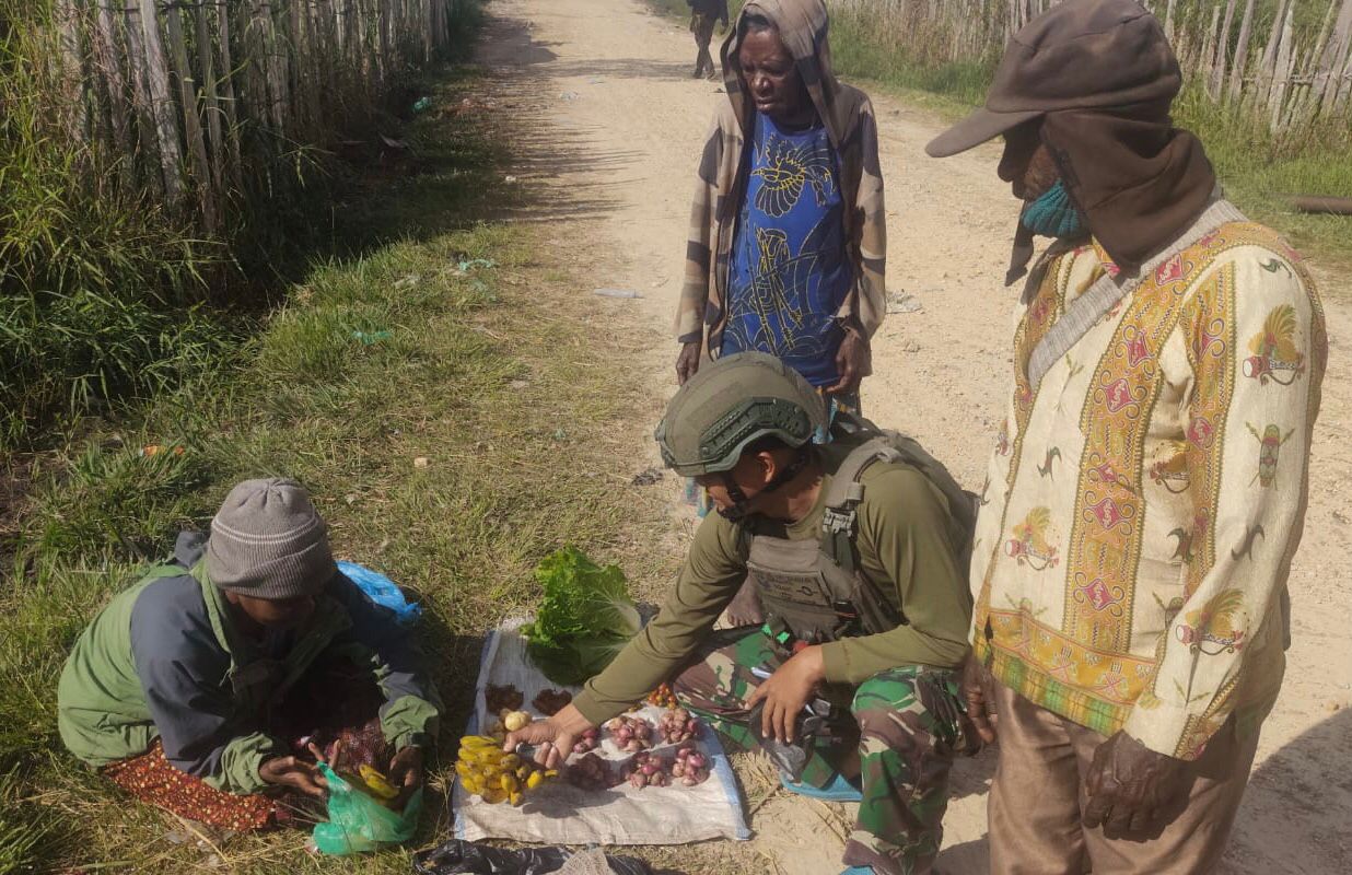 Hasil tani seperti sayur-mayur, umbi-umbian, hingga buah-buahan lokal menjadi komoditas yang dibeli oleh prajurit. Aktivitas tersebut juga menjadi momen interaksi hangat antara anggota Satgas dan warga, memperkuat hubungan sosial yang selama ini terus dibangun.