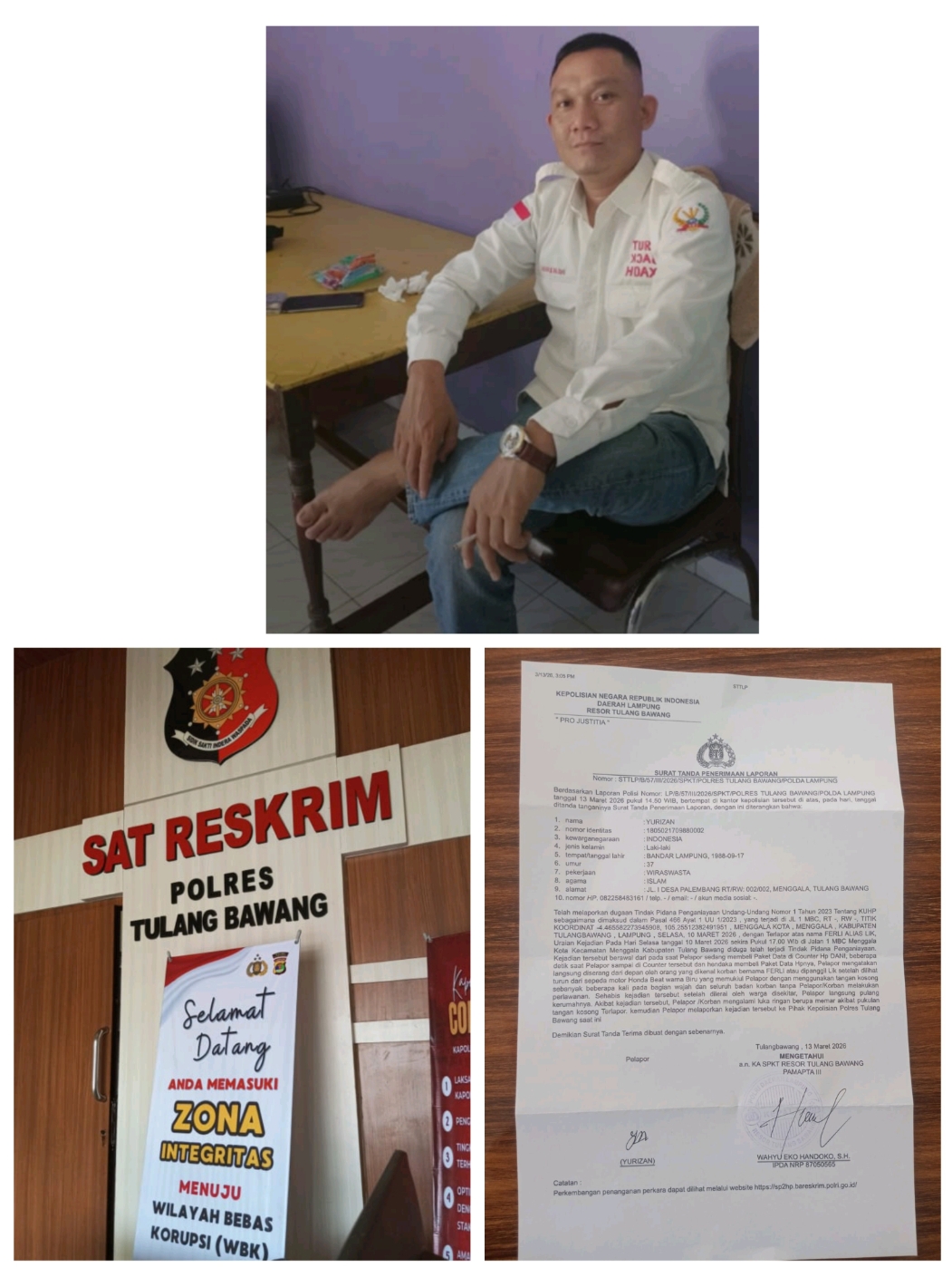 Dia menambahkan usai memberikan laporan penganiayaan tersebut ke Polres Tulang Bawang, dirinya berharap berdasarkan hasil laporan polisi Nomor LP/B/57/lll/2026/SPKT/POLRES TULANG BAWANG/POLDA LAMPUNG tanggal 13 Maret 2026 pukul 14:50 dapat ditindaklanjuti.” Saya meminta kepada Kasat Reskrim AKP. Apfryyadi menindak lanjuti laporan penganiayaan ini, harapannya diproses dan menangkap pelaku penganiaya agar mempertanggungjawabkan perbuatannya sesuai dengan undang-undang yang berlaku di Negara Kesatuan Republik Indonesia”. Pintanya (Red)