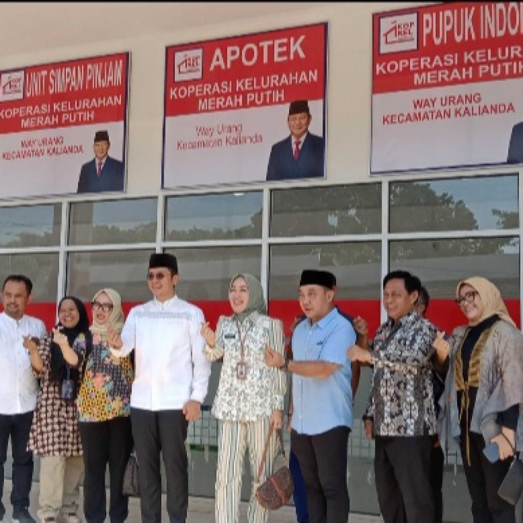 Bupati Lampung Selatan (Lamsel) Radityo Egi Pratama dan Wakil Bupati (Wabup) Muhammad Syaiful Anwar beserta sejumlah Organisasi Perangkat Daerah (OPD) tinjau langsung kesiapan outlet Koperasi Merah Putih (KMP) Kelurahan Way Urang yang berada tepat didepan halaman Masjid Agung, Kalianda, pada Jum’at (18/7/2025).