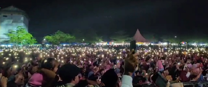 Tumpah ruah..!! Ribuan masyarakat hadiri pengajian akbar dan silahturahmi Kebangsaan bersama Gus Mitfah dan konser Setia Band, di lapangan Srikandi, Desa Sidowaluyo, Kecamatan Sidomulyo, Kabupaten Lampung Selatan (Lamsel), pada Minggu malam (6/10/2024).