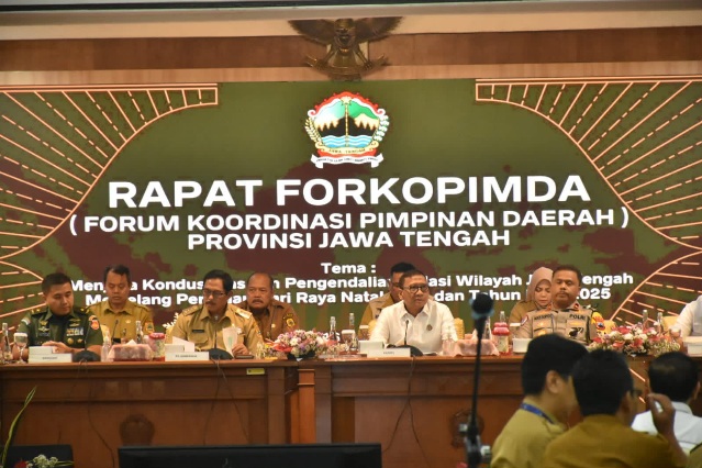 Pj Wali Kota Salatiga, Yasip Khasani mengikuti Rapat Forkopimda Jateng bersama Pj Gubernur Jateng, Nana Sudjana di Gedung Gradhika Bhakti Praja, Senin (16/12/2024).